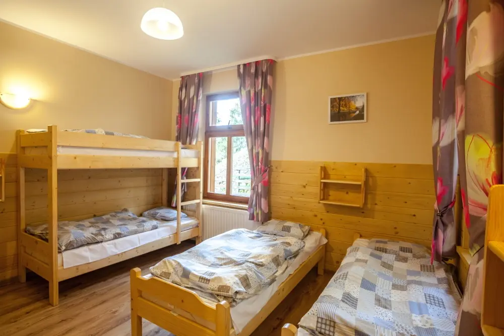 Posiadamy 44 miejsca noclegowye o bardzo wysokim standardzie. Oferujemy pokoje do wynajęcia 2-, 3-, 4- i 5-osobowe. Każdy pokój oferuje przytulne wnętrze wykończone drewnem z telewizorem, większość posiada łazienkę. W naszej ofercie noclegowej jest również kilka miejsc w pokojach, bez pełnego węzła higieniczno-sanitarnego.